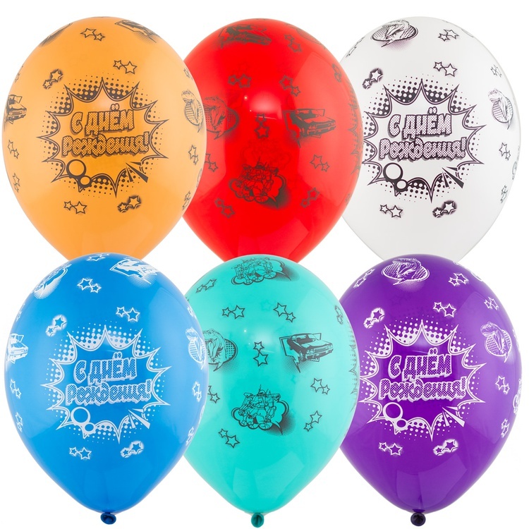 Латексный Шар С Рисунком Пастель С ДР Комиксы 12"/30СМ, наполненный гелием и привязанный на ленточку